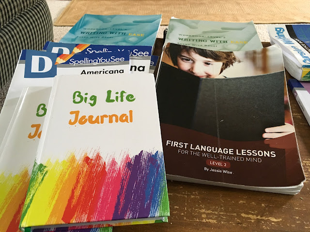 Big sister A and Brother M have already started their next "Writing with Ease" workbooks. I hope we can finish them over the summer, especially big sister A. She will be moving on to the "Writing with Skill" series of workbooks as part of her middle school curriculum in the fall. I also try to do the "First Language Lessons for the Well Trained Mind" with everyone as it is an excellent guide for grammar, acting as a review for the older kids and a good first look for the younger two. We finished book 1 last year and will hopefully be done with book 2 by the summer's end. Both A and M received these "Big Life Journals" as gifts and they are great for goal setting. The stories give examples of great men and women and how they accomplished their goals and I think it helps motivate the kids to think about what they would like to accomplish in their lives.
