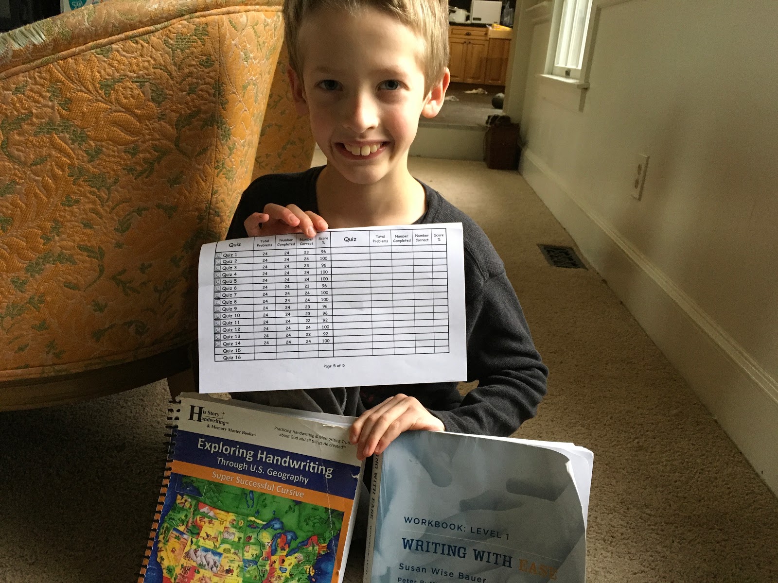 It is so much fun to see the progress as you start coming to the end of all the worksheets. Brother M was happy with himself when he finished!