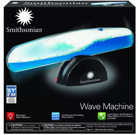The Smithsonian Wave Machine is a cool way to learn about waves! Not only that but it's soothing to watch! My son was able to put this together quickly and had a blast. This toy was inspirational for him to learn about waves and he wants to learn even more now that it has sparked his interests. He was able to observe a continuous wave simulation which was pretty cool. He could explore how waves impact the landscape. He learned about how waves and rip currents form. He couldn't learn enough - this kit really inspired his curiosity. It really inspired him to go out and learn more, including about the largest waves ever recorded, what causes tides and why they are good to track, rogue waves, tsunamis, and more! This kit definitely made him view the world differently and he now has a better understanding of water, waves, and more! This kit is for ages 14+. It uses one C (1.5V) battery (not included).