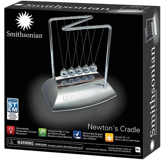 The Smithsonian Newton's Cradle Science Kit is another family favorite. I think that Newton's Cradle is a staple in many high school science classrooms, so I was excited to show this amazing concept to my son while he's just in middle school. It was fun to talk about Newton's Third Law of Motion - for every action, there is an opposite and equal reaction. It's so easy to observe how potential (stored) energy becomes kinetic energy and how momentum and energy are transferred from one side of Newton's Cradle to the other. This toy provides the opportunity for many different experiments! This toy is for ages 8+. It does not need any batteries. It just needs a little energy from your little ones to get it started by dropping one of the balls!