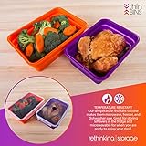 Safe temperature resistant thin bins are made from 100 fda compliant nontoxic bpa free food grade silicone They are odorless tasteless nonstick leakproof and easy to clean Our temperature resistant silicone makes them microwave freezer and dishwasher safe Great for storing leftovers in the fridge and microwavable for when you are ready to enjoy your meal Just pop them in the dishwasher when you are done for hasslefree cleaning Value set set of 2 extralarge assorted stackable and collapsible silicone containers includes one large 50 oz and one extra large 68 oz container From storing dried foods to wet foods leftovers to meal prep and indoor to outdoor this versatile set is the perfect solution for your different food storage needs